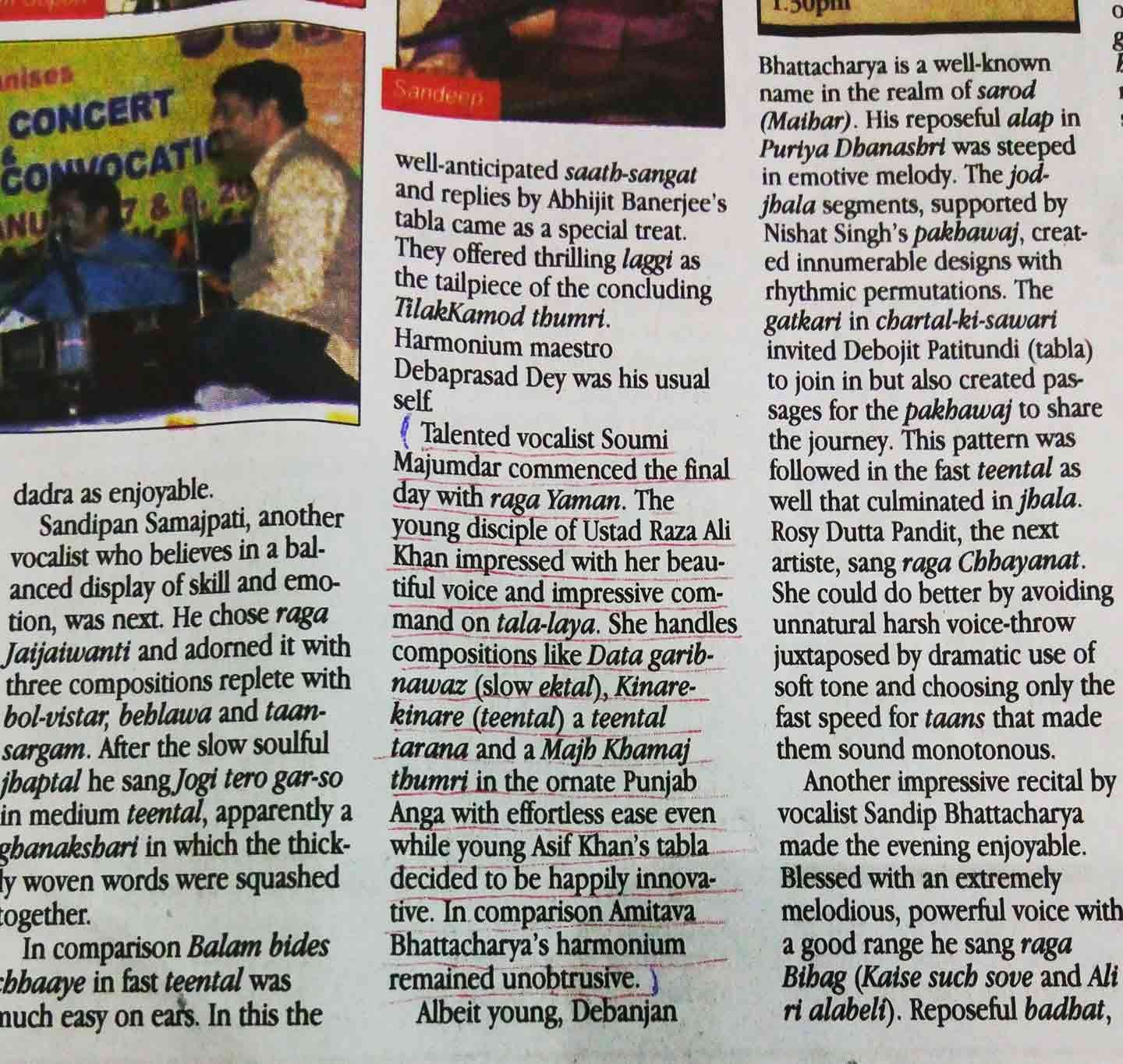 Performed at Prestigious 'BISHNUPUR MUSIC FESTIVAL' at Bishnupur( 'Jor Shrenir Mandir' at Poramatir haat) organised by Tourism Ministry, Government of West Bengal.